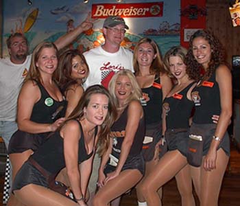 Just look at these girls! I wish they ALL could be California girls! I only stopped in to get a t-shirt and take this picture, but they were all really nice and extra friendly. But who the hell is that glory stealing freak trying to get in on my groove? What a loser. Hey pal, get a freaking life! And while your at it, get a real job. what are you doing at the bar at noon on a Friday stoned out of your gourd?