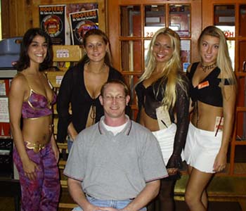 Whoah. Look at these girls. It may not look it, but these ARE Hooters girls. It was theme night and the theme was 'Tease'. I don't think they're having a problem pulling that one off. And talk about a tease, I don't think the one on the right is wearing panties. I should have asked, but it didn't really matter. They're all such little hotties. I didn't think any Hooters was going to top the Santa Monica girls, but Rhode Island definately has the hottest chicas to date.